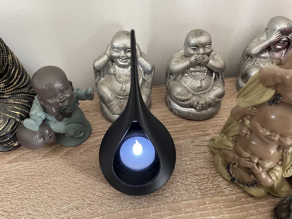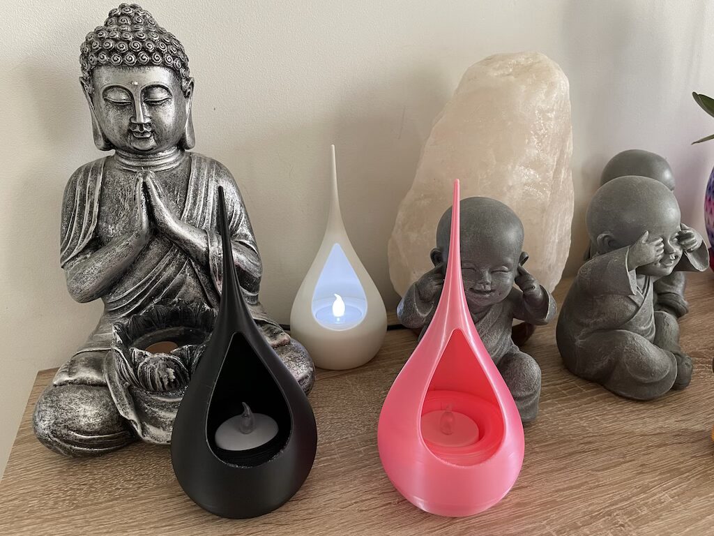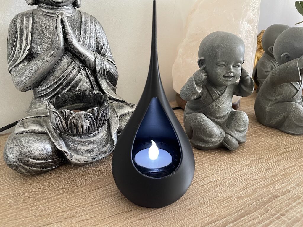 Apportez une ambiance apaisante et contemporaine à votre intérieur avec Larméa, notre porte-bougie exclusif. Fruit d’un travail de précision en impression 3D, ce photophore arbore une silhouette élancée en forme de goutte d’eau, mêlant pureté des lignes et jeu de lumière subtil.