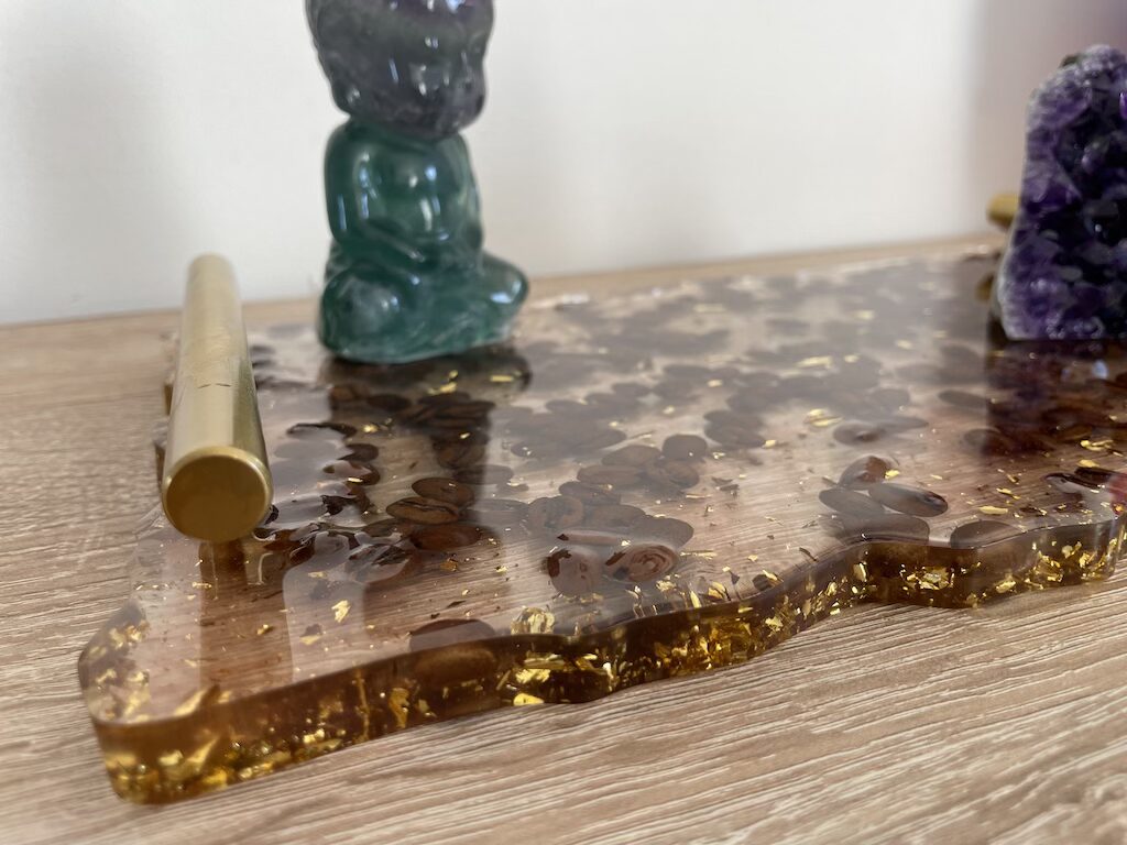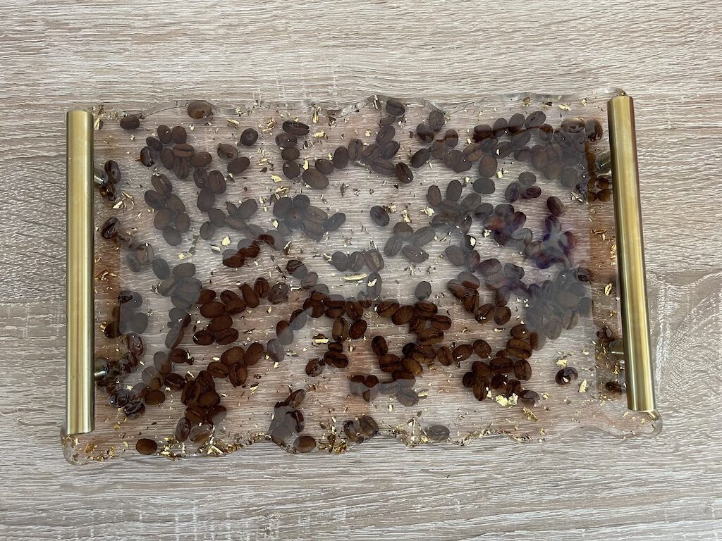 L’élégance d’un café matinal alliée au design contemporain. Ce plateau unique, orné de ses poignées dorées, capture l’essence même de l’artisanat.