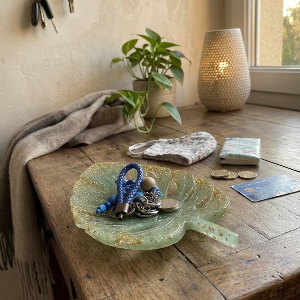 Apportez une touche naturelle et élégante à votre intérieur avec ce vide-poche en forme de feuille de Monstera, entièrement réalisé à la main en résine époxy. Idéal pour déposer vos clés, bijoux ou petits objets du quotidien tout en décorant votre entrée, votre bureau ou votre table de chevet.
